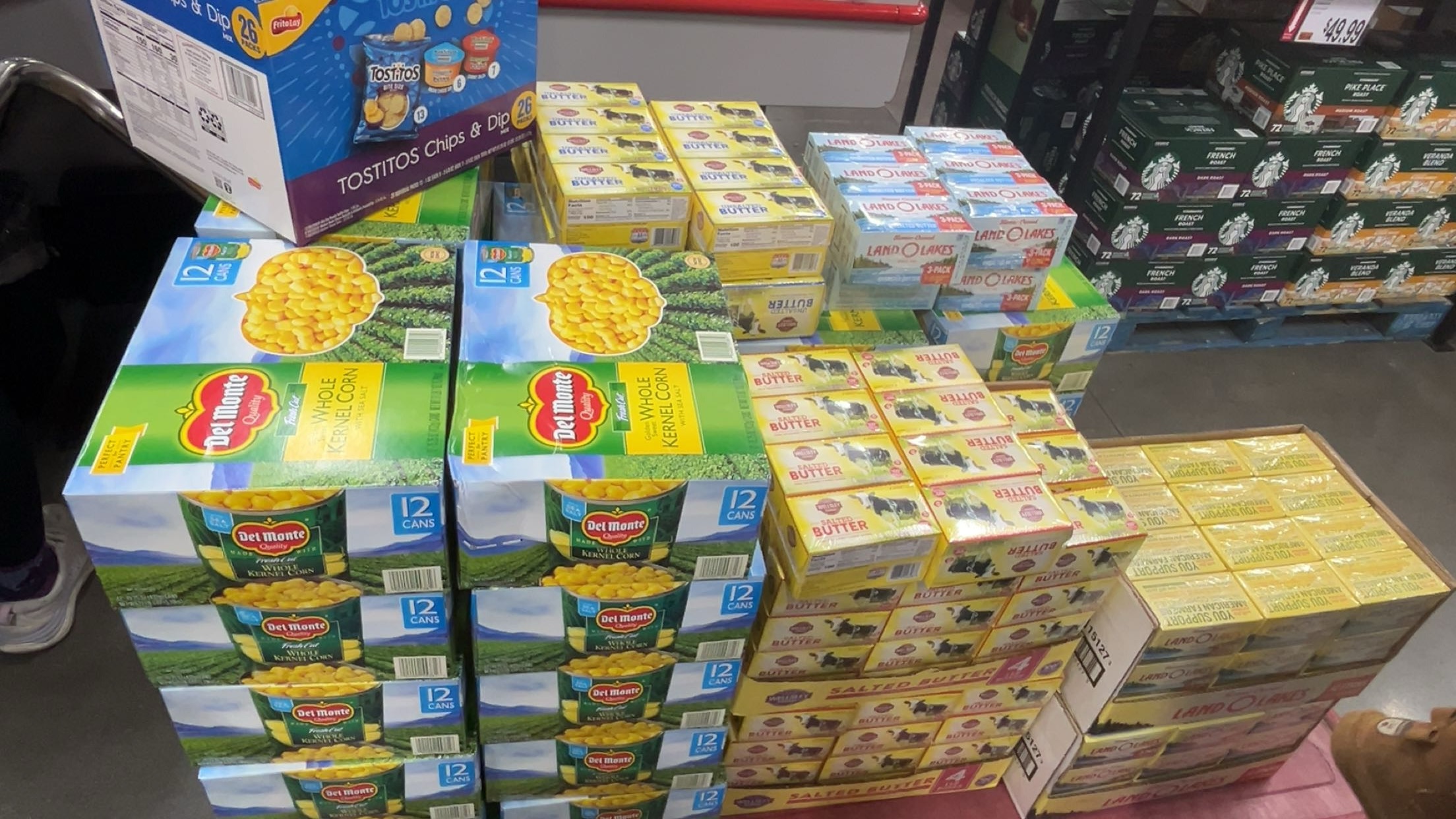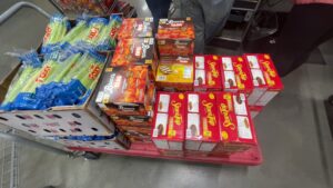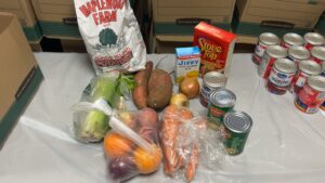 The first distribution box included essential items such as eggs, butter, bread, fruits, vegetables, rice, oats, beans, pasta, canned proteins, soup mixes, peanut butter, and other pantry staples—ensuring families had both meals and snacks during an uncertain time.