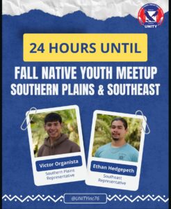 As a Southeast Executive Committee Member of the National UNITY Council, Ethan co-hosted a Southeast and Southern Plains Regional Meetup over Zoom alongside Southern Plains Representative Victor Organista. The virtual gathering created space for youth leaders across regions to connect, share updates, and strengthen collaboration. Regional meetups like this are vital to the UNITY network, ensuring Native youth voices remain unified and informed between national conferences.