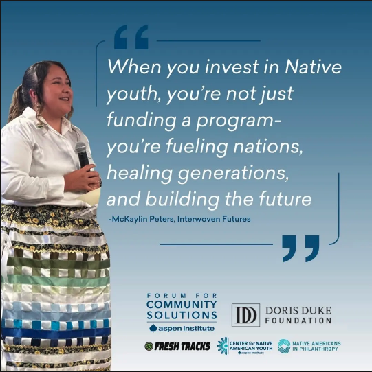 Her travels then took her to New York City, where she closed out Interwoven Futures: Indigenous Youth, Land Stewardship and Community Wellbeing, hosted at the Doris Duke Foundation. Standing before a room of peers and leaders, McKaylin left the gathering with words that will echo for years: “We need to invest in Indigenous communities long-term. When you invest in Native youth, you’re not just funding programs or initiatives – you’re fueling nations, healing generations, and building future generations.” She described the moment simply: “It felt good to be in community with everyone.”
