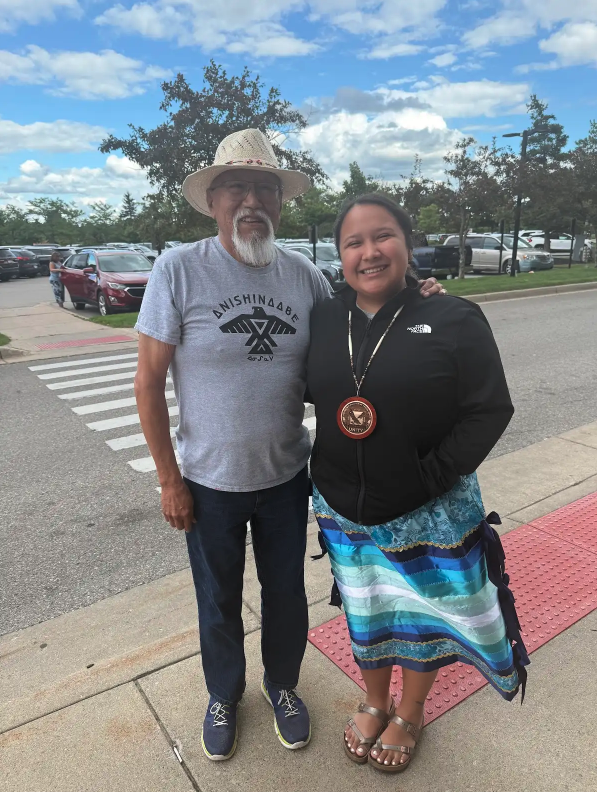 The sound of jingles echoed through the Woodland Bowl as Menominee Earth Ambassador McKaylin Peters stepped out in her new regalia—dresses she had sewn herself with care. Dancing old style jingle at her tribe’s powwow, she felt grounded in tradition and proud of the work of her own hands. Her family’s drum, the Smokeytown Singers, carried the songs as she sang backup for her uncles and grandfather. “It felt great to sing back up for my uncles and grandpa,” she said, a moment that tied family, culture, and leadership together in one circle.