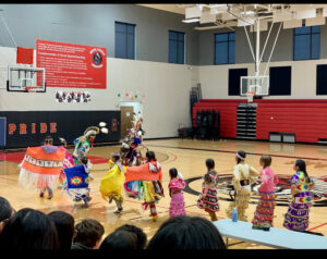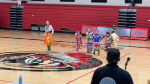 Back in White Shield High School, Weston helped lead his Youth Council’s annual Handgames Tournament, welcoming students from Twin Buttes and New Town. With support from Margaret Yellowbird and Eya Fox, the tournament brought friendly competition, laughter, and cultural pride—and the White Shield team proudly took first place this year. Alongside the tournament, the Youth Council also hosted a school-day powwow, introducing students to different styles of dance through grand entry and individual demonstrations, creating a powerful learning moment rooted in culture and visibility.