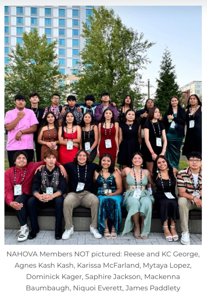 As their Advisor wrote: “On July 2nd NAHOVA and SFS staff attended the Gala. The night begins with a Fashion Show and transitions into an awards night.  There is much anticipation for the UNITY Advisor of the Year and Youth Council of the Year awards. This year as the speaker announced the awards, they displayed the awardee name and tribe on the big screens, and as they announced Youth Council of the Year, the Nez Perce Tribe NAHOVA name popped up on the screen.  NAHOVA members were seated at three tables and each table jumped up in joy! In the video you could hear kids saying, ‘we did it!’ There were many smiles and occasional warhoops, as well as tears of happiness. It is a quite an accomplishment for this group of young leaders, especially in a short three-year period, they accomplished a lot of good things! They are well-deserving.”