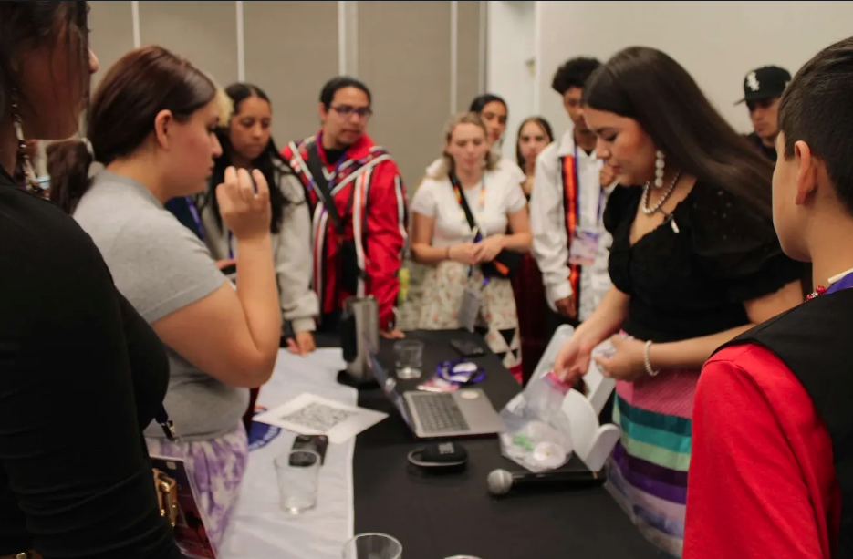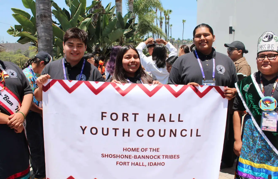 Mazie’s conference experience was full of connections and cultural pride. She co-hosted a workshop with the Fort Hall Youth Council on the history of the Shoshone-Bannock people and their traditional plants. Her Northwest Region caucus meetings were just as powerful — “The room was packed and everyone enjoyed themselves to say the least. We danced to round dance songs, listened to youths’ impactful words, and came together as one.” In a touching moment of intertribal friendship, the Tulalip Youth Council from Washington gifted her a traditional woven headband during her workshop.