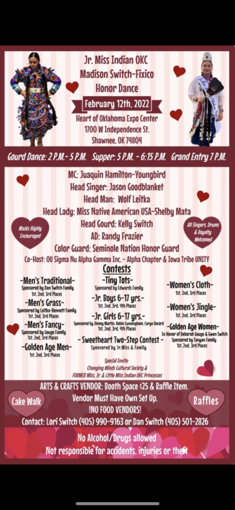 It was a great honor that this youth council was asked to be a co-host for this honor dance. meet-up. We think that it is important to do check-ins with all of our members, especially after the hit our youth council has taken from our advisor being removed. So, through the navigation of obstacles, we are still moving forward while trying to find ways to interact with other youth councils in this region to continue the incorporation of creative ideas and establishments of connection to be reinforced. The Powwow committee & Family Committee helped support me through the month. It is really our job to support and be helpful in any capacity that is possible.