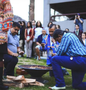 Nearly all our ceremonial ways are centered around the use of air, water, pant life, animal life, and the use of fire. For this reason, a member of the 1995 Executive Committee of the National UNITY Council by the name of SleepyEye LaFromboise, Seneca/Dakota, asked one of his grandfathers, the late Warren Skye, Seneca, how UNITY could utilize these elements during the national conference. At the time, “Grandpa Skye” explained that whenever the Nations of the Haudenosaunee people meet to conduct business or have ceremonies they always utilize a fire with prayer. Since many Nations of Native youth come together during the National Conference to better themselves, the concept of the fire was presented.