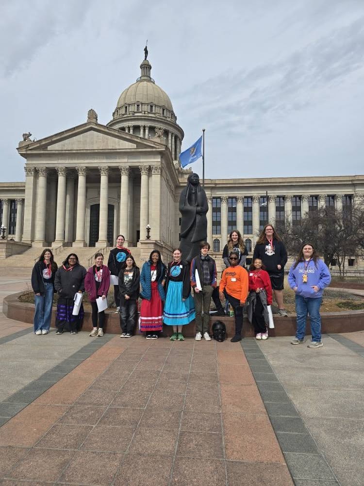Thirteen members of the Tulsa Native Youth Board (TNYB) traveled to the Oklahoma State Capitol to participate in the Oklahoma Council for Indian Education Legislative Day—a powerful opportunity for youth to engage in civic education, advocacy, and cultural connection. The event focused on informing Native students about current legislative issues impacting Indigenous communities, with an emphasis on how those policies affect Native youth.