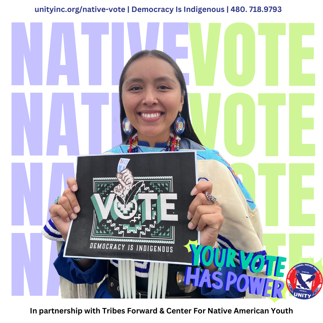 CLICK below to download two Free UNITY GOTV toolkits designed to empower Native youth in elections by increasing voter participation, representation, and advocacy strategies. The toolkit also includes links to three UNITY webinars featuring Native youth guest speakers actively engaging our community through grassroots voter education.