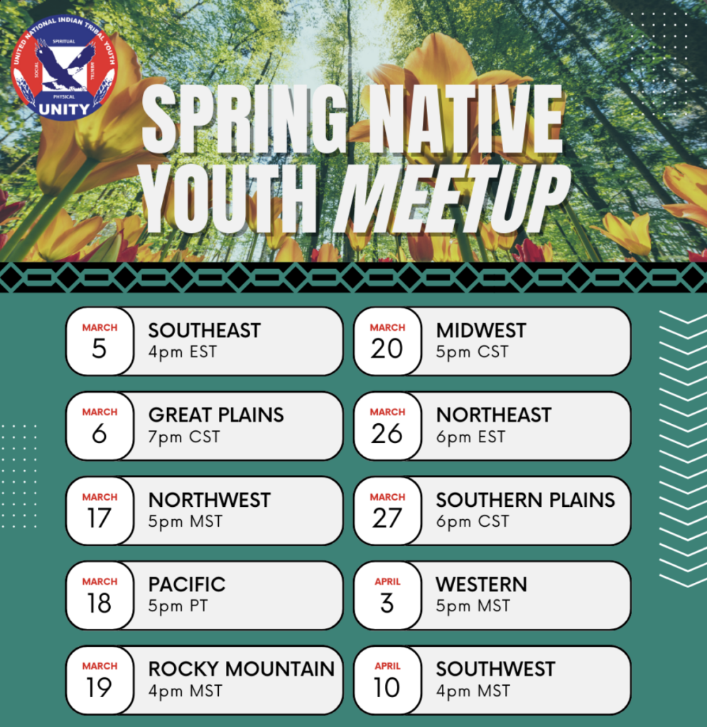 Mar 5 – Apr 16: Click on the Spring Native Youth & Advisor Meet-Ups Below to RSVP Today: