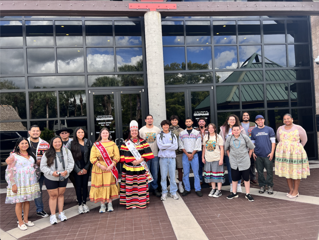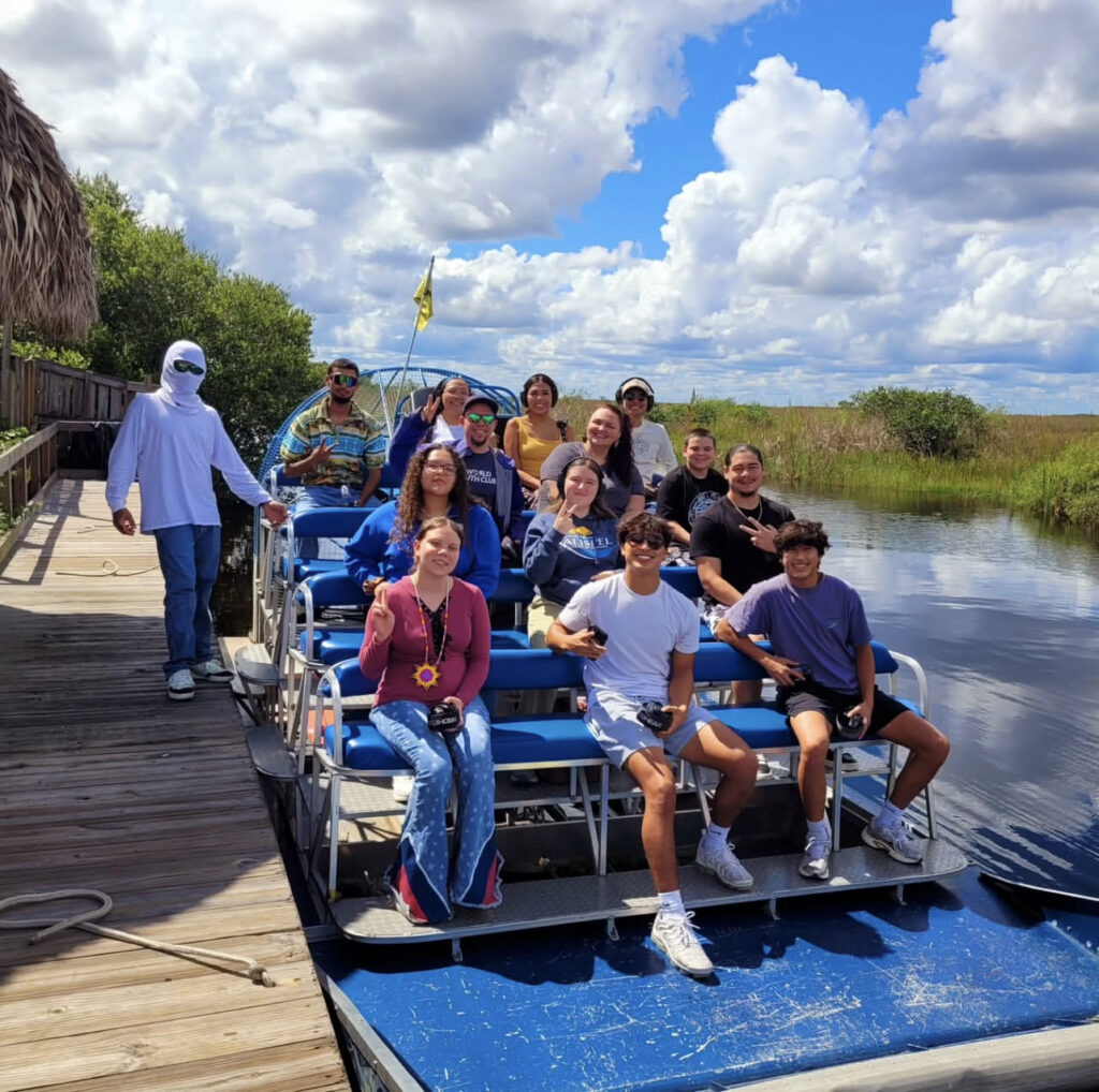 The Earth Ambassadors’ journey began at the Ah-Tah-Thi-Ki Museum, where Museum Assistant Director Jojo Osceola and Director Gordon Wareham welcomed them with a powerful reminder of the importance of preserving tribal history and environmental knowledge. Big Cypress community members gave tours and emphasized how museums can serve as living connections between past and present conservation efforts. This was followed by a warm introduction at the Unity Center, where Big Cypress Councilwoman Mariann Billie encouraged the youth to ground their leadership in community responsibility, reinforcing how tribal governance plays a vital role in environmental advocacy.