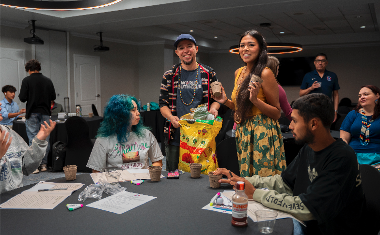 Mahiya Ramirez (Muscogee (Creek) Nation) introduced the idea of sustainable fashion, showing how youth can make an impact through mindful choices in clothing production and consumption. Finally, Nizhoni Deschene (Navajo & Turtle Mountain Chippewa) inspired participants with a vision for renewable energy sovereignty, calling on Native nations to lead in adopting clean energy solutions that strengthen both sovereignty and sustainability. Together, their presentations empowered participants with actionable models for community-based environmental leadership.
